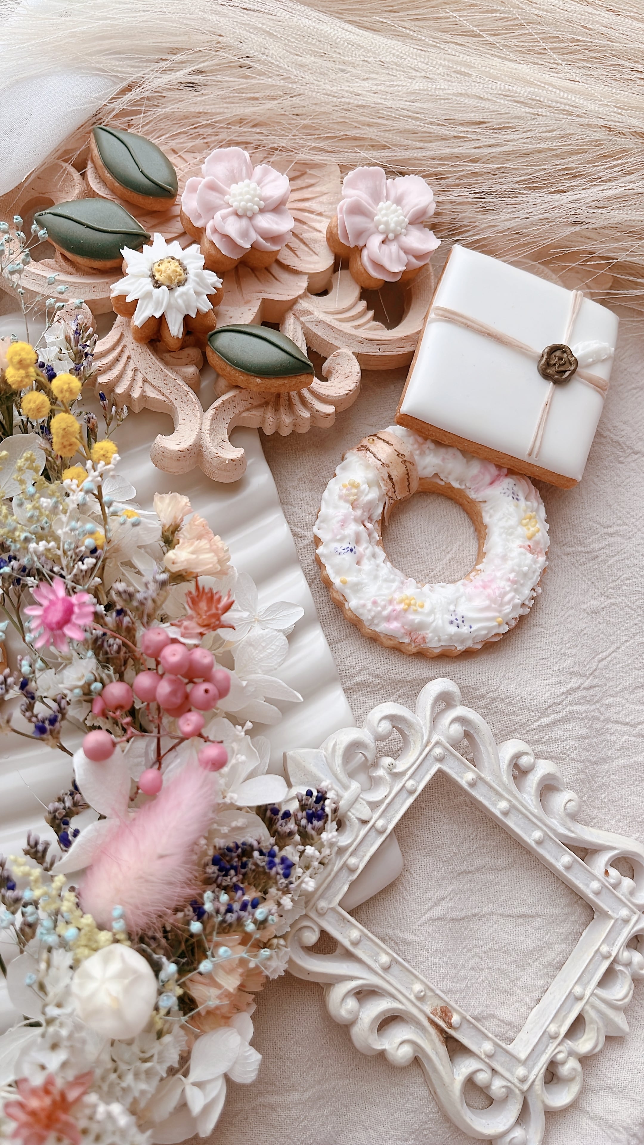 + little plants フラワーリース 約20cmx20cm+アイシングクッキー12枚