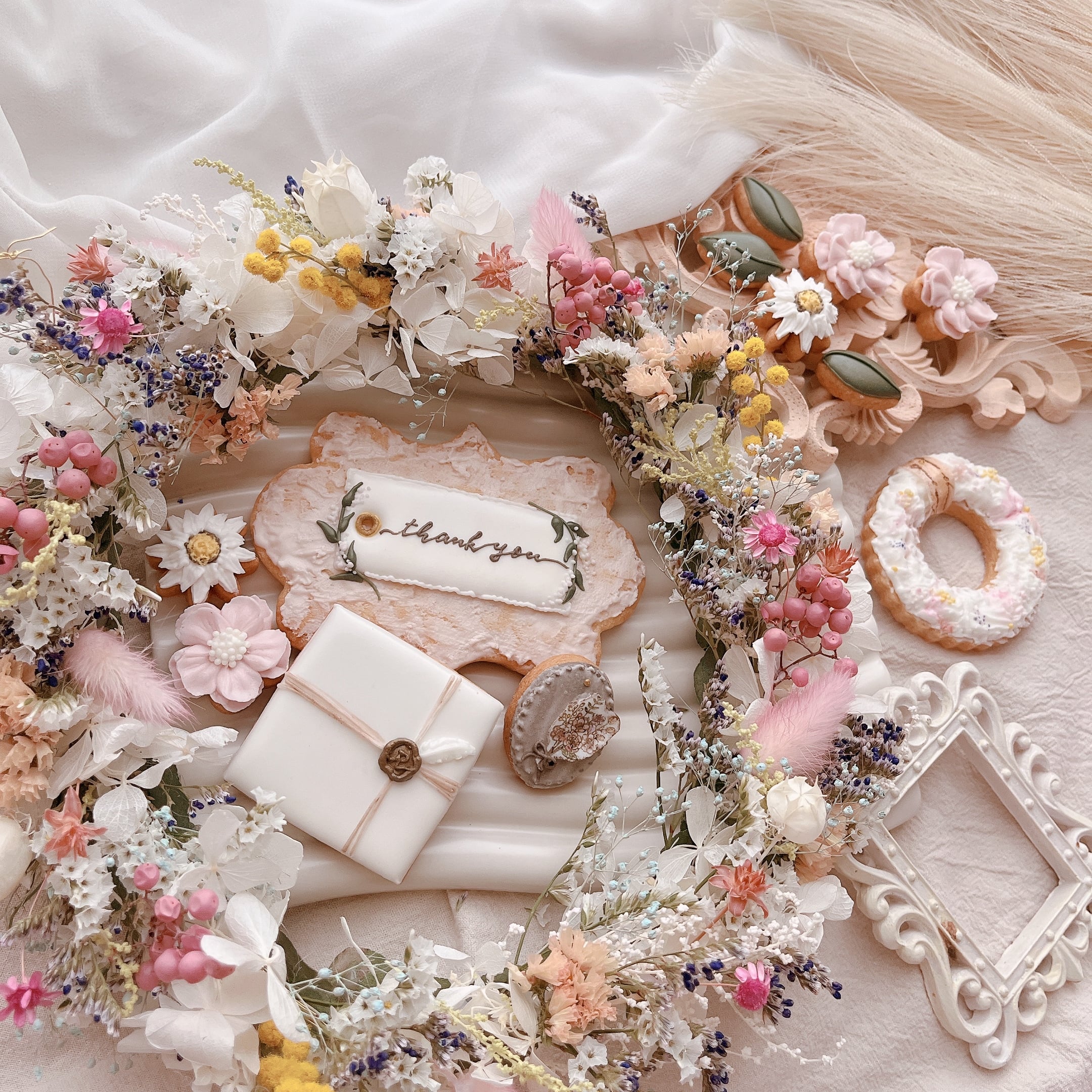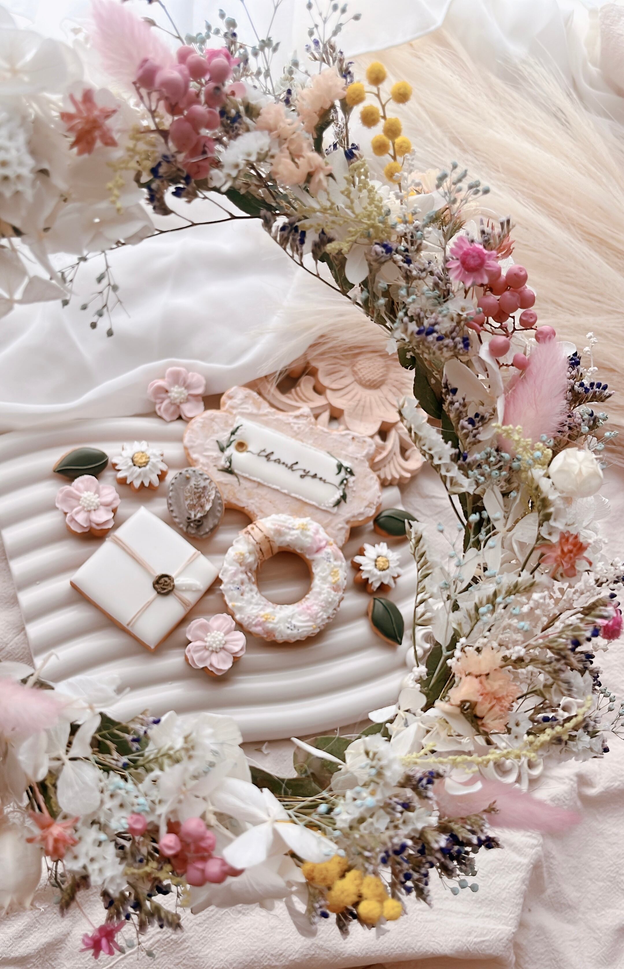 そんな思いをフラワーリースとアイシングクッキーに込めた豪華なgift BOXです。